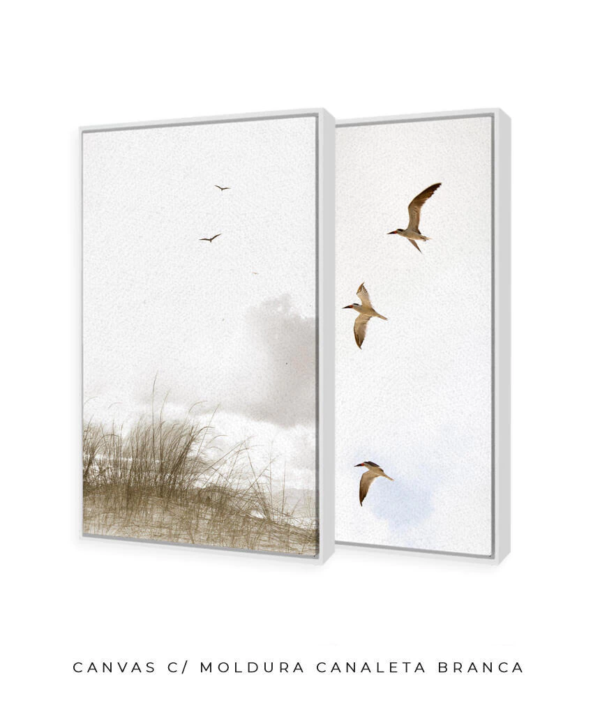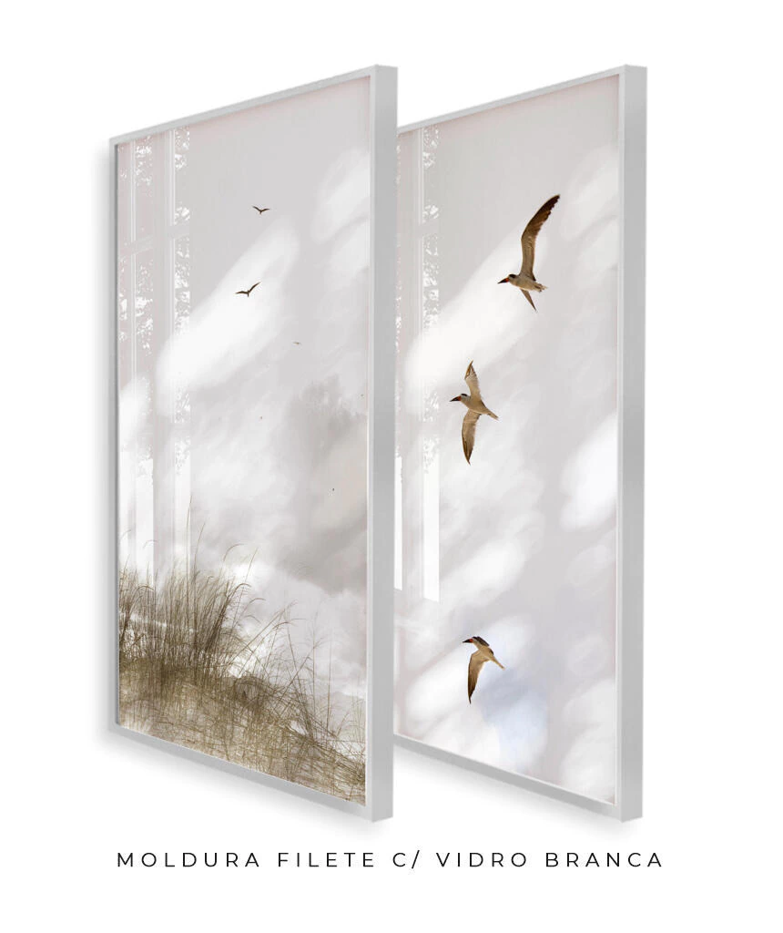 “Tarde delícia, em um dos lugares que mais gosto de estar. Eu chego, tiro as sandálias e sinto a areia se acomodar entre os dedos dos pés. Estou na praia da Reserva, em Floripa. Respiro cal-ma-men-te. Olho o horizonte. Láááááá onde céu e mar se encontram. Perto de mim, sobre minha cabeça, gaivotas deslisam na brisa suave. Eu não penso duas vezes! Retiro a capinha da lente da câmera e aponto para o céu. Registro. Depois, por outro ângulo, registro de novo. Confiro e penso: acho que vai dar um quadro (ou dois).”