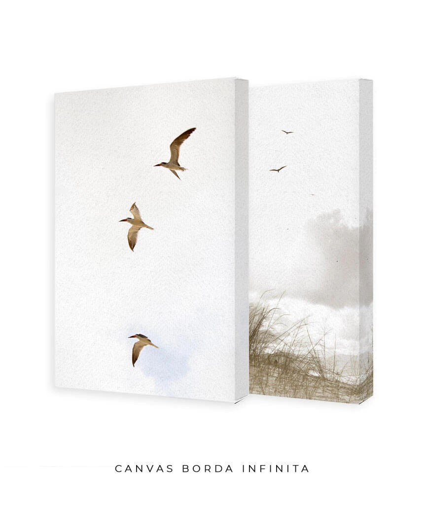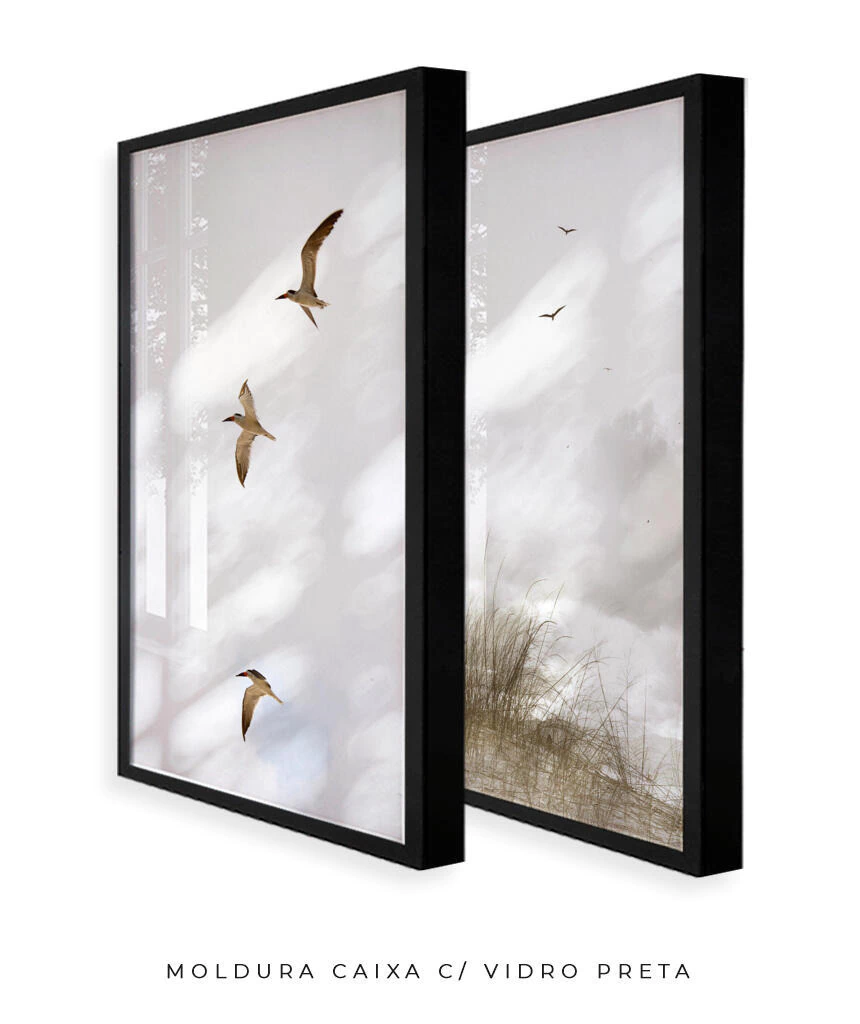 “Tarde delícia, em um dos lugares que mais gosto de estar. Eu chego, tiro as sandálias e sinto a areia se acomodar entre os dedos dos pés. Estou na praia da Reserva, em Floripa. Respiro cal-ma-men-te. Olho o horizonte. Láááááá onde céu e mar se encontram. Perto de mim, sobre minha cabeça, gaivotas deslisam na brisa suave. Eu não penso duas vezes! Retiro a capinha da lente da câmera e aponto para o céu. Registro. Depois, por outro ângulo, registro de novo. Confiro e penso: acho que vai dar um quadro (ou dois).”